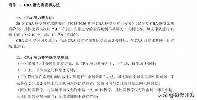 北京時間12月21日,涉及到新賽季CBA出新規,各隊都將和其他19個對手在常規賽結束後8分鐘額外進行1場潛力賽。