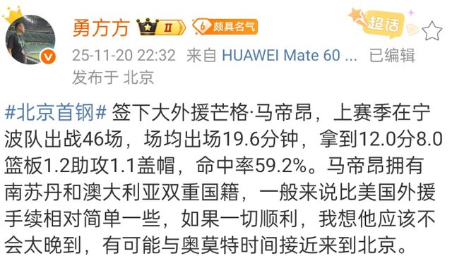 根據北京媒體報道,上賽季在寧波富邦打球的外援馬帝昂確定會加盟北京首鋼,要知道他是被寧波富邦放棄離開CBA賽場的,同時一個月前他因為傷病被韓國球隊裁掉,許利民這樣力排眾議,的確有些看不懂。