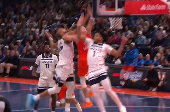 戈貝爾擊中哈爾滕施泰因面部吃T,森林狼挑戰成功改吹哈爾滕施泰因犯規,但戈貝爾技術犯規保留。