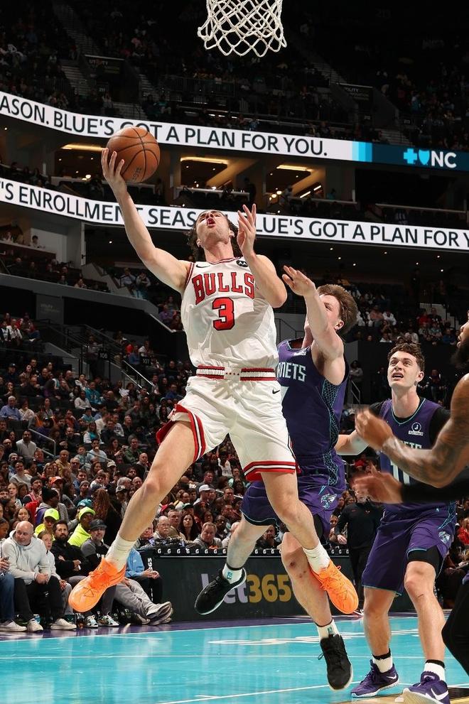 中場休息回來,公牛連續兩節單節轟下30+得分,且限制黃蜂本場首次單節不足30分。公牛被拉開67-76落後9分差距,公牛打出一波11-2攻勢追平比分,雙方之後交替領先纏鬥,懷特與吉迪引領公牛逐步反超比分,公牛單節32-26凈勝6分,三節結束公牛94-93反超黃蜂1分。前三節比賽,公牛三分僅26中6,懷特23分與吉迪18+9+7,引領公牛5人得分上雙,黃蜂三分34中13,米勒5記三分25分、三球13+6+5與塞克斯頓16分。