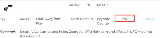 第二次漏判發生在距離比賽結束還有5.8秒,湖人球員斯馬特在發球階段夾住並按住爵士球員喬治的右臂,幹擾其接球動作,並導致他摔倒。這是一次漏吹的防守犯規,同樣是湖人獲利,爵士吃虧。