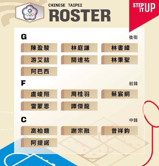 中國臺北男籃世預賽第一窗口期大名單: