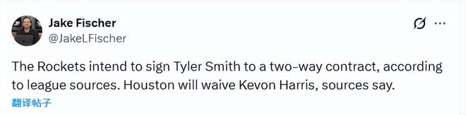 北京時間12月3日,據NBA記者傑克-費舍爾報道,火箭隊計劃與自由球員前鋒泰勒-史密斯簽下一份雙向合同,為瞭給這位新援騰出陣容名額,球隊將裁掉後衛凱文-哈裡斯。
