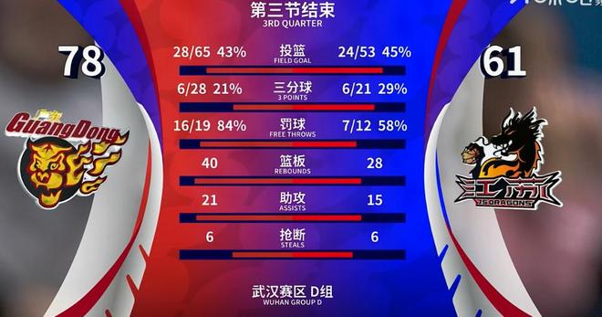 全華班對拼階段,沒瞭三節16中4的鐵匠奎因,廣東隊反而打得更好,徐傑站出來兩回合連下5分,楊溢也罕見飚進一記三分+制造反擊2+1;