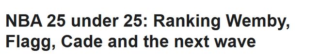 北京時間12月13日,ESPN評選瞭聯盟25歲以下的25大球星,評選標準是球員的長期潛力。馬刺的文班亞馬居首,森林狼的愛德華茲排名第2,活塞的坎寧安位列第3。火箭共計3人上榜,分別是排在第5的申京、排在第6的阿門以及排在第25的謝潑德。