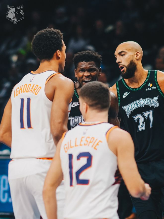 太陽隊的馬威得到22分和7個籃板,吉萊斯皮得到19分、6個籃板和4次助攻,佈魯克斯得到18分,阿倫得到12分和4次助攻,奧尼爾得到11分、8個籃板和5次助攻,伊戈霍達羅得到10分和5個籃板。森林狼隊的愛德華茲得到40分和9個籃板,蘭德爾得到21分和8次助攻,戈貝爾得到15分和8個籃板,海蘭德得到14分。