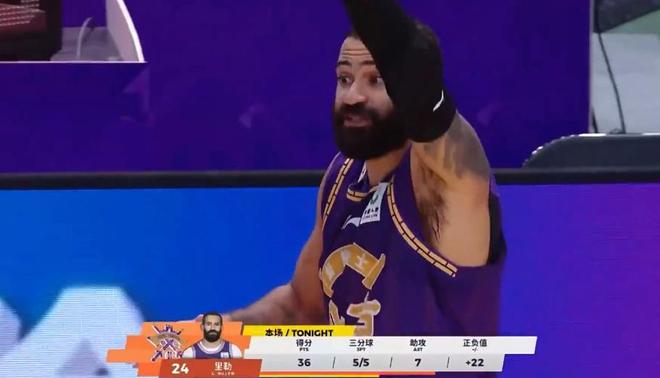 第四節還剩7分22秒,張慶鵬換上裡勒收割比賽,前三節山東隊對於裡勒的防守沒有做到位,這一節邱彪重點采取全場雙人包夾策略,盡管如此,也還是沒法限制裡勒,末節最後7分鐘,裡勒分別用中投、罰球、突破的方式單節再拿7分,在山東多位外線防守悍將包夾下殺出重圍也給隊友制造瞭不少空位上分機會,裡勒全場獨砍36分3板7助3搶斷,正負值+22,率隊97-92擊敗山東,展現極致的個人英雄主義。