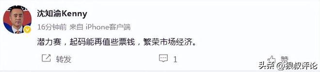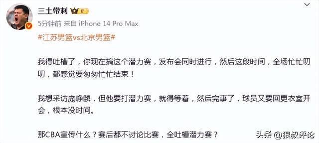 媒體人“三土帶刺”發文點評:“我得吐槽瞭,你現在搞這個潛力賽,發佈會同時進行,然後這段時間,全場忙忙叨叨,都感覺要匆匆忙忙結束!