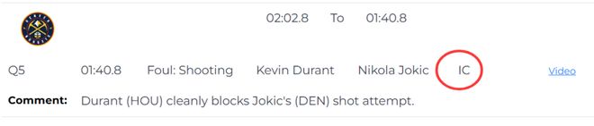 第一次是錯判,發生在距離比賽結束還有1分40秒。約基奇背打申京,轉身殺入內線出手,杜蘭特上前打掉球,被裁判吹防守犯規,給瞭約基奇罰球機會。裁判報告指出,杜蘭特這一球沒有犯規,是一次幹凈的蓋帽。這次錯判,掘金獲利,火箭吃虧。