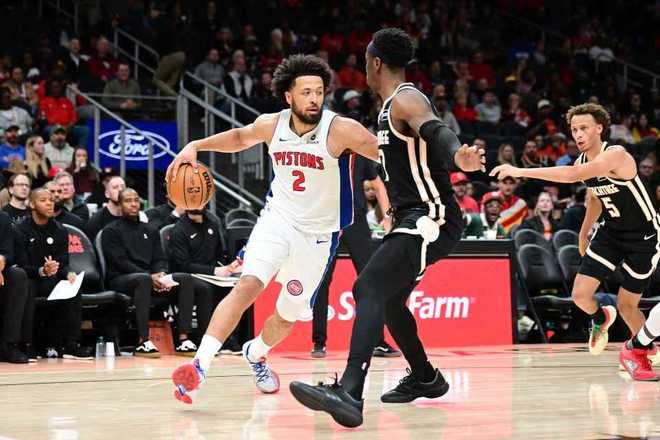 活塞過去10場成為本賽季首支達成10連勝的球隊穩居東部第一,老鷹過去5場在缺少特雷-楊情況下收獲5連勝。本場老鷹缺少特雷-楊、波爾津吉斯與裡薩謝等,活塞缺少艾維、哈裡斯與薩瑟。首節前3分鐘活塞內外開花取得13-5領先優勢,老鷹一波7-0攻勢追到差1分,活塞回敬一波8-0攻勢擴大9分優勢。老鷹連得7分迫近比分,老鷹之後還追到27-27,活塞繼續打出一波8-3攻勢拉開比分,首節比賽結束活塞35-30領先老鷹5分。