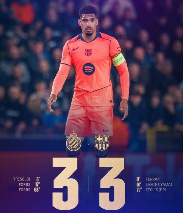 回看巴萨欧冠3比3布鲁日的比赛,两队开场就进入快节奏对抗,主场作战的布鲁日率先发难。第6分钟,布鲁日中场策动流畅进攻,萨贝送出精准直传,博尔赫斯高速推进至禁区后横传门前,特雷索尔迪及时包抄推射破门,为球队取得1-0的梦幻开局。