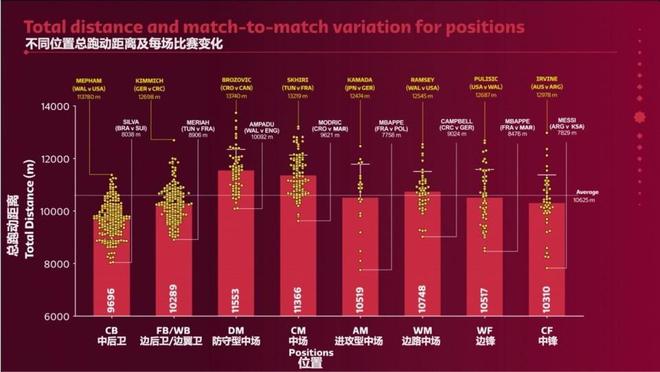 比如阿根廷、巴西和法国队的跑动量都不到105公里,相对跑动量更高的葡萄牙、比利时和德国队要么折戟16强,要么直接小组赛出局。