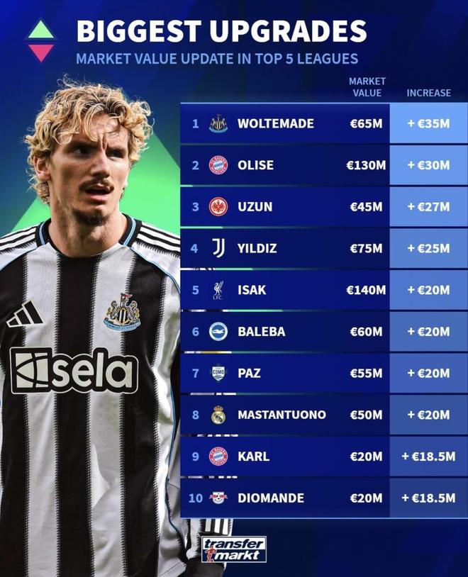 球员身价涨幅:+3000万欧元