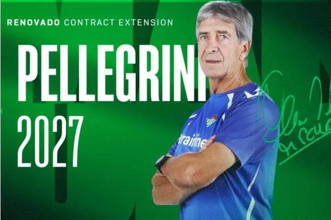 北京时间11月28日,皇家贝蒂斯官方发布公告,宣布与球队主帅佩莱格里尼续约至2027年。