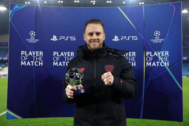 官方消息,弗莱肯当选曼城对阵勒沃库森一役全场最佳。
