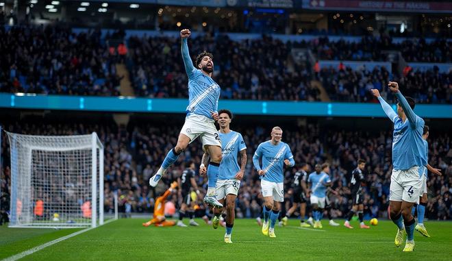 開場才1分鐘時間,曼城立馬打出瞭高速閃擊戰;格瓦迪奧爾後場長傳送到右路,努內斯與B席撞墻配合立馬沖入禁區倒三角回敲,福登包抄墊射入網,1:0!福登這粒進球時間確切在59秒,成為瞭本賽季英超的最快進球紀錄;同時福登英超生涯203次出場已打入63球,這使得他的英超進球數超過貝克漢姆和亞亞-圖雷。