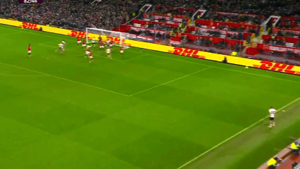 易邊再戰,第58分鐘。阿瑪德右路突破後回做,卡塞米羅迎球爆射擊中防守球員彈起,達洛特背身拿球後轉身抽射破門,曼聯1-0領先;老特拉福德現場瞬間沸騰,似乎勝利已經向曼聯招手。