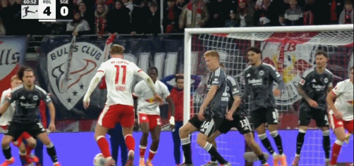 第62分钟,胡安-拉松手球送点,劳姆主罚命中,莱比锡5-0法兰克福