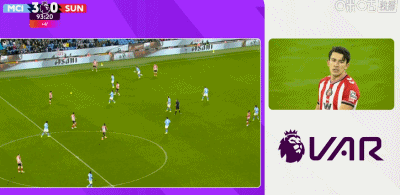 第90+5分鐘,奧尼安兇狠放鏟努內斯,主裁判觀看VAR後出示紅牌