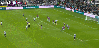 第90+4分鐘,拉姆齊送點,弗萊明點射破門扳回一城,伯恩利1-2紐卡