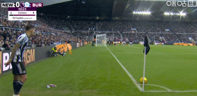 第31分鐘,吉馬良斯角球直接罰進球門,紐卡1-0領先