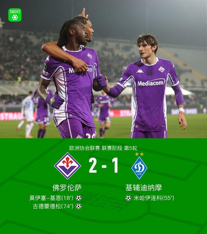 北京時間12月12日,歐洲協會聯賽聯賽階段第5輪展開較量,佛羅倫薩迎戰基輔迪納摩。比賽中,多多送出助攻,莫伊塞-基恩接球後完成破門,為球隊取得領先。隨後,皮哈洛諾克助攻米哈伊連科推射得手,將比分扳平。比賽進入尾聲階段,古德蒙德松挺身而出,攻入關鍵一球,幫助球隊再度建立優勢。最終全場比分為2-1,佛羅倫薩戰勝基輔迪納摩。