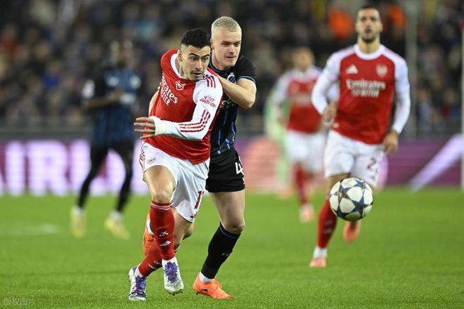 阿森纳近段时间在英超的表现不佳,被曼城连连追分,虽然还是领头羊,但领先优势只剩下2分。作为本赛季欧冠目前为止唯一全胜的球队,来到欧冠赛场,阿森纳又找回了状态。今天作客扬布雷德尔球场,开场后阿森纳就反客为主展开猛烈攻势,第3分钟,阿森纳右路压上转移中路,厄德高禁区弧顶前接球稍作调整左脚大力兜射,门将休维尔奋力将球扑出。第20分钟,阿森纳右路进攻,厄德高下底传中,马杜埃凯小禁区线上抢点后脑勺一蹭将球顶回来,斯凯利禁区弧顶处迎球左脚凌空扫射,这球打偏了,不过刚好踢到因卡皮耶跟前,后者小禁区前沿半转身凌空一挡,BOOM的一声,皮球被门柱挡出,布鲁日逃过一劫。