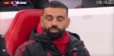 第15分鐘,利物浦一球領先,鏡頭多次找到替補席的薩拉赫