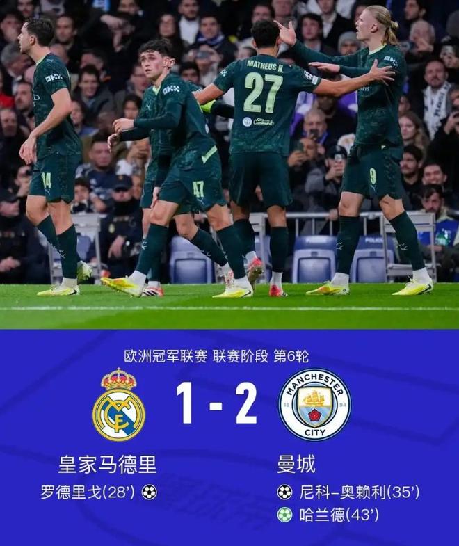 逆转+全胜!曼城掀翻皇马,阿森纳6连胜,欧冠晋级形势大洗牌