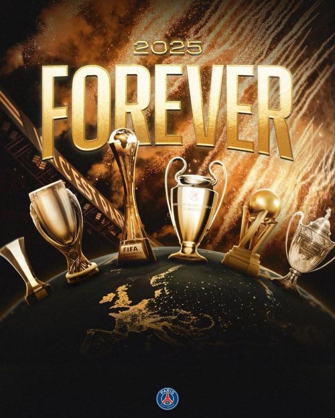 巴黎将2025年斩获的6座冠军奖杯放在海报中,并配文:2025,永恒。
