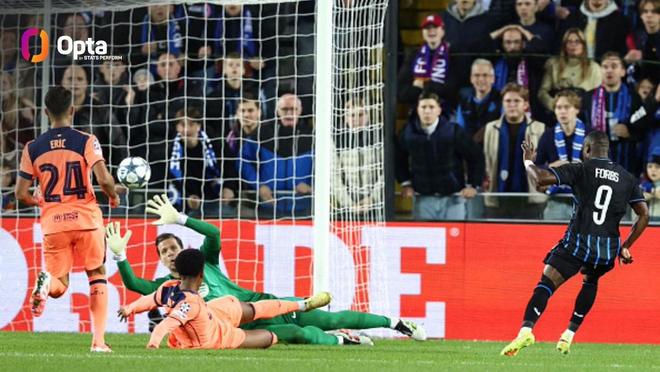 根据统计,本场比赛布鲁日的特雷索尔迪和卡洛斯-福布斯先后破门让巴萨在开场16分钟35秒就丢掉了两个球,这也让巴萨遭遇了他们欧冠单场比赛中最快出现的两个丢球。