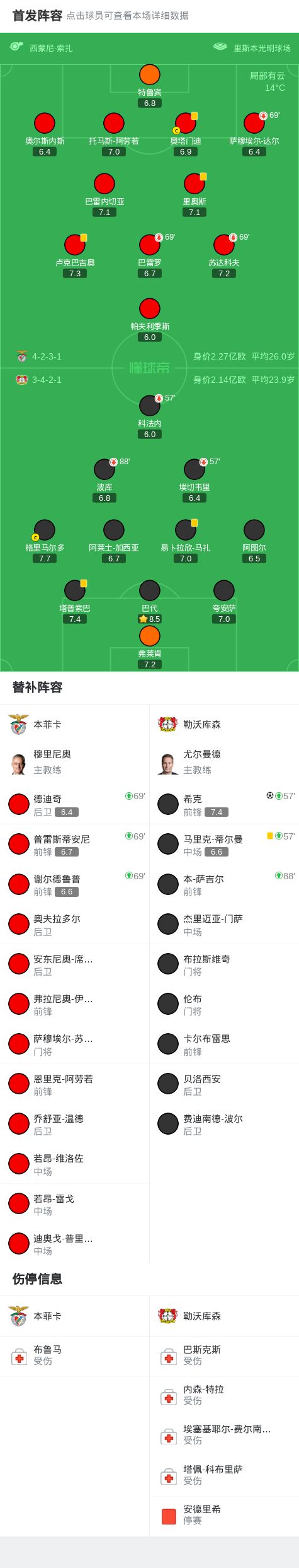 勒沃库森客场1-0战胜本菲卡,希克制胜