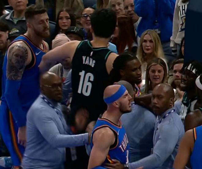 此外,在第二節前半段比賽,雙方一度爆發沖突,哈爾滕施泰因認為呂佩爾對米切爾的犯規動作過大,過去叫板與呂佩爾爆發沖突,楊瀚森在身後拉走發脾氣暴怒的哈爾滕施泰因,也是成功加入勸架之列阻止事態擴大。