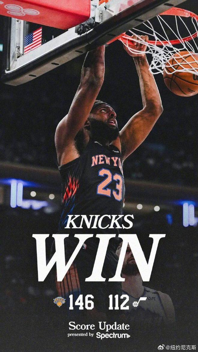 尼克斯全場最多時刻領先41分優勢,末節比賽提前失去勝負懸念,尼克斯單節31-35被追回4分,最終尼克斯146-112輕松大勝爵士,進一步鞏固東部第二。