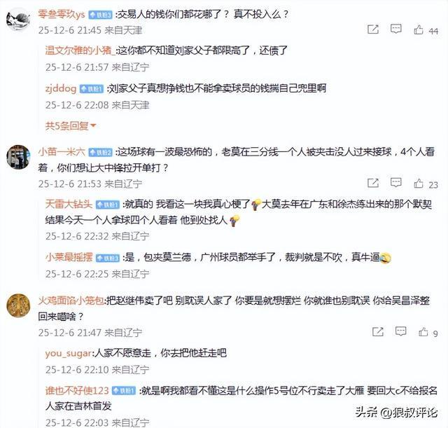 球迷對於這一支遼寧男籃即戰力同樣表達不滿,特別是連續送走瞭弗格,張鎮麟,郭艾倫等核心球員後,引進或者培養球員都很難達到短時間內挑大梁。