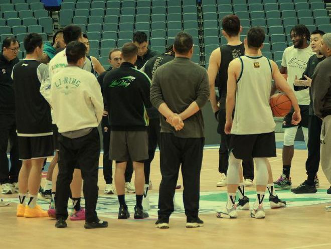 值得一提的是,在遼籃的踩場訓練結束後,楊鳴告訴大傢放下包袱放手一搏,首先必須要有好的比賽態度,把遼籃精神打出來。