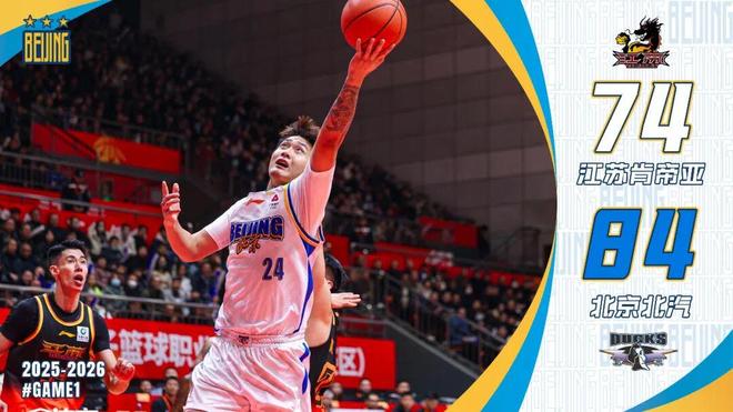 新賽季開門紅!北京北汽客場84:74戰勝江蘇肯帝亞。