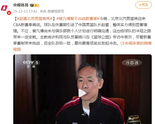 北京時間12月13日,北京男籃新賽季首戰對陣江蘇男籃,北京男籃引進中國男籃隊長趙睿,但曾凡博尚未回歸球隊。北京男籃主帥許利民表示,到目前為止曾凡博還沒有和球隊溝通好,而趙睿是因為看到他蛻變為一位精神領袖球員。
