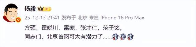 難怪看到這樣的局面,外界都在吐槽瞭,連名嘴楊毅都忍不住瞭,直言:北京首鋼太有潛力瞭……