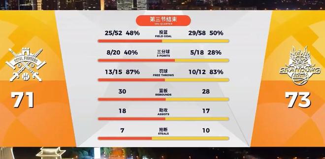 末節單外援決戰,邱彪先發珀賽爾,張慶鵬先發佩裡,前三節山東三分球18中5,山東開局三分球再打2鐵,關鍵時刻還是陳林堅站出來投進本隊第6記三分,在裡勒休息的這段時間,北控也算是艱難咬住瞭分差。