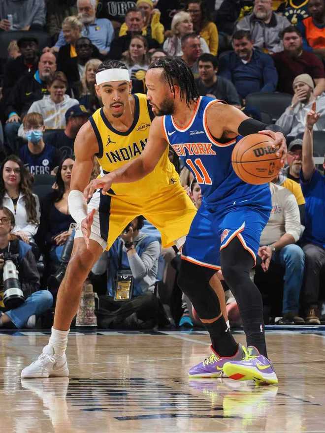 尼克斯上一場124-113戰勝馬刺,奪得隊史首座NBA杯冠軍,步行者過去兩場連輸76人與奇才遭遇2連敗。本場步行者缺少哈利伯頓、內史密斯與謝潑德,尼克斯缺少唐斯、哈特、沙梅特、麥克佈萊德。首節開局尼克斯6-7落後,步行者逐步攻防碾壓尼克斯,打出一波21-6攻勢壓制,尼克斯已經12-28落後16分差距。尼克斯回敬一波13-8攻勢追分,首節結束尼克斯25-36落後步行者。佈倫森9中4得到10+3+2,內姆哈德5中4得到10分。