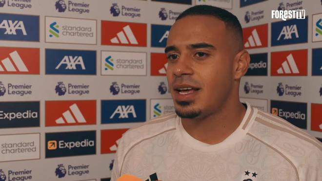 諾丁漢森林客場3-0戰勝利物浦,本場比賽表現出色的穆裡略接受瞭賽後采訪。
