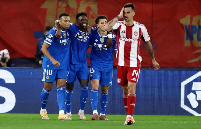 上轮欧冠输给本赛季状态低迷的利物浦,过去2轮西甲又战平了联赛排名中游的巴列卡诺与埃尔切,进入11月份的皇马成绩可谓是一塌糊涂;积分榜上的优势仅剩1分,关于阿隆索争议直到迄今依然犹在。北京时间11月27日凌晨,皇马前往希腊客场与奥林匹亚科斯展开欧冠第5轮的对决;姆巴佩上演大四喜,皇马在进球大战当中4:3险胜。