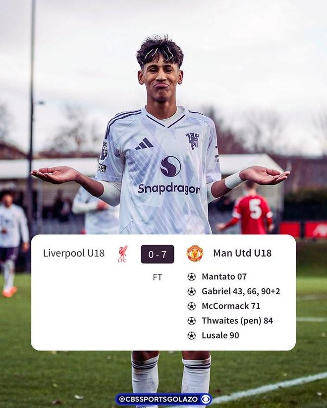 曼聯U18客場7-0擊敗利物浦U19,JJ-加佈裡埃爾戴帽