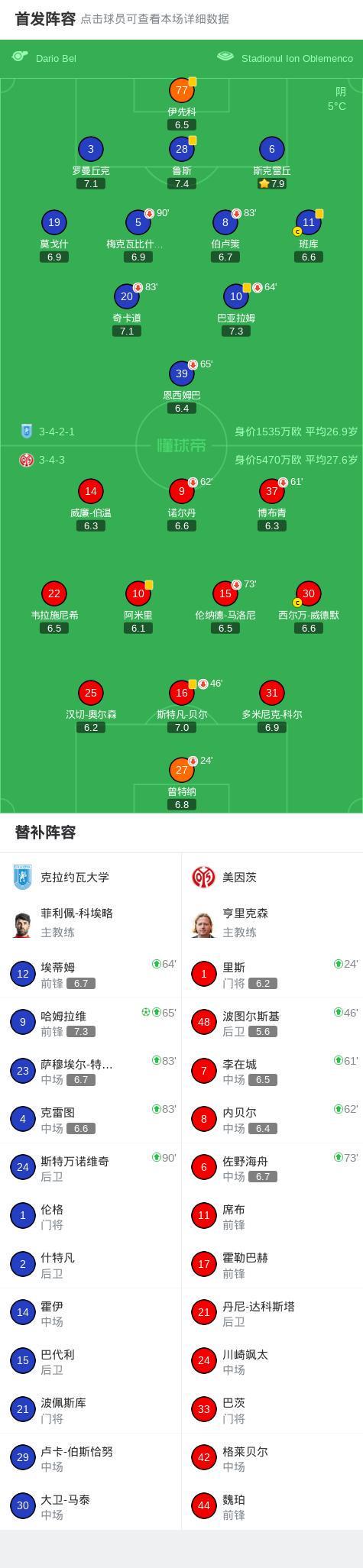 克拉约瓦大学1-0美因茨,哈姆拉维点射制胜
