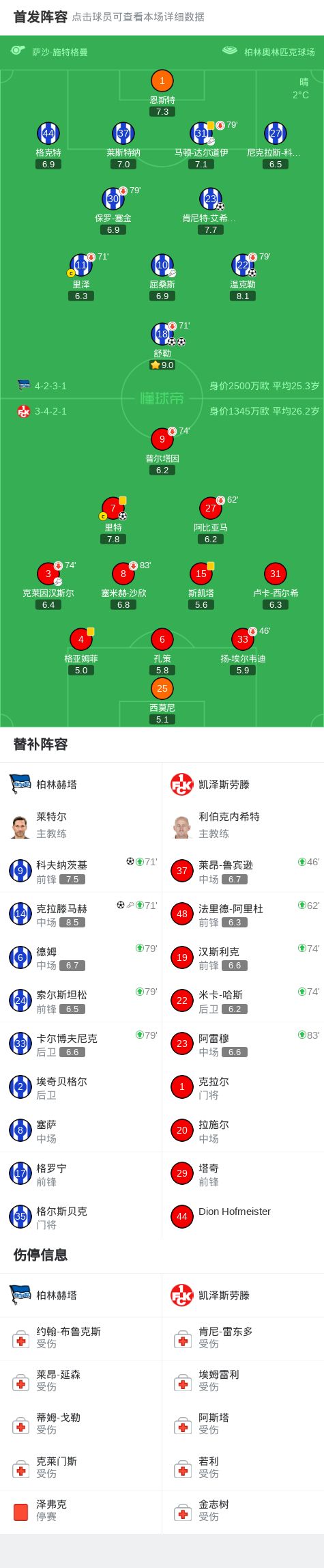 第75分钟,柏林赫塔球员克拉滕马赫助攻科夫纳茨基打入一球。