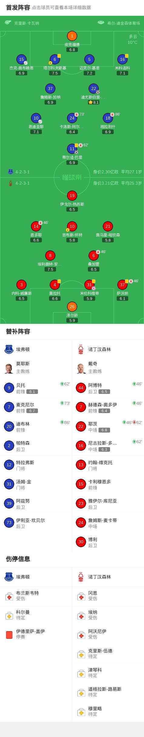 埃弗頓3-0諾丁漢森林,霍爾破門+造米倫科維奇烏龍,巴裡建功