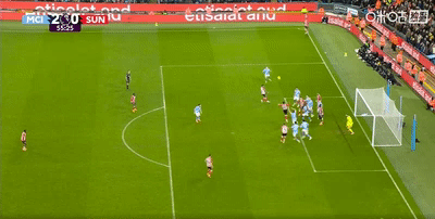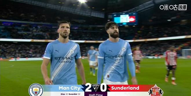 半場結束,曼城憑借兩名中後衛各進一球,暫時主場兩球領先桑德蘭。