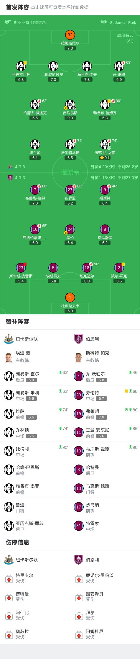 北京時間12月6日英超聯賽 第15輪,紐卡斯爾聯主場對陣伯恩利。上半場,吉馬良斯直接角球破門。盧卡斯-皮雷斯放倒埃蘭加吃到紅牌。烏戈舒庫手球送點,安東尼-戈登點球命中。下半場,拉姆齊手球送點,弗萊明點射破門扳回一城。最終紐卡斯爾主場2-1力克伯恩利。