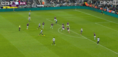 第90+4分鐘,拉姆齊送點,弗萊明點射破門扳回一城,伯恩利1-2紐卡